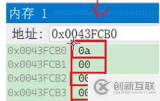 看數(shù)據(jù)圖,這四個(gè)內(nèi)存單元確實(shí)都有編號(hào)(地址),而0x0043FCB0才是a的地址,那么