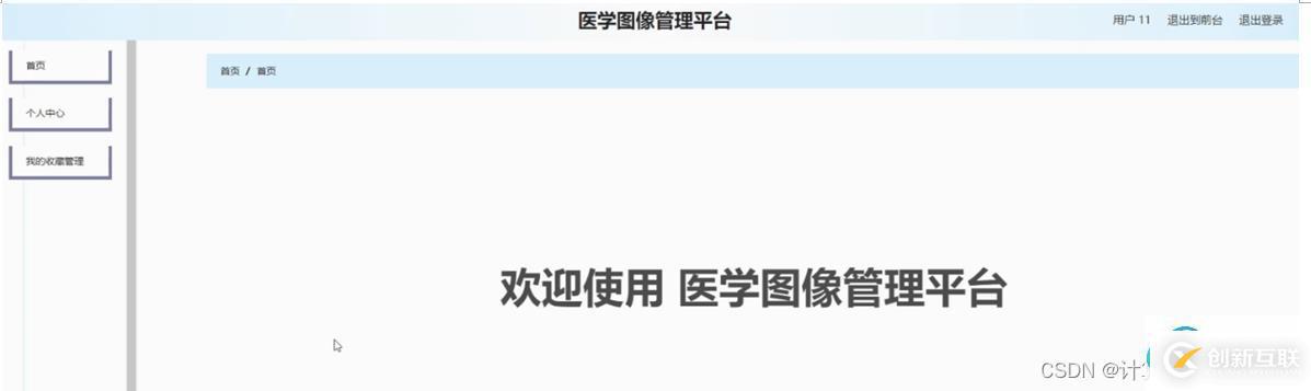 5.1前臺模塊設(shè)計系統(tǒng)首頁的主要功能展示了首頁,醫(yī)學圖像,個人中心,后臺管理等,用戶可根據(jù)權(quán)限進行相應(yīng)操作。運行結(jié)果如圖5-1所示。