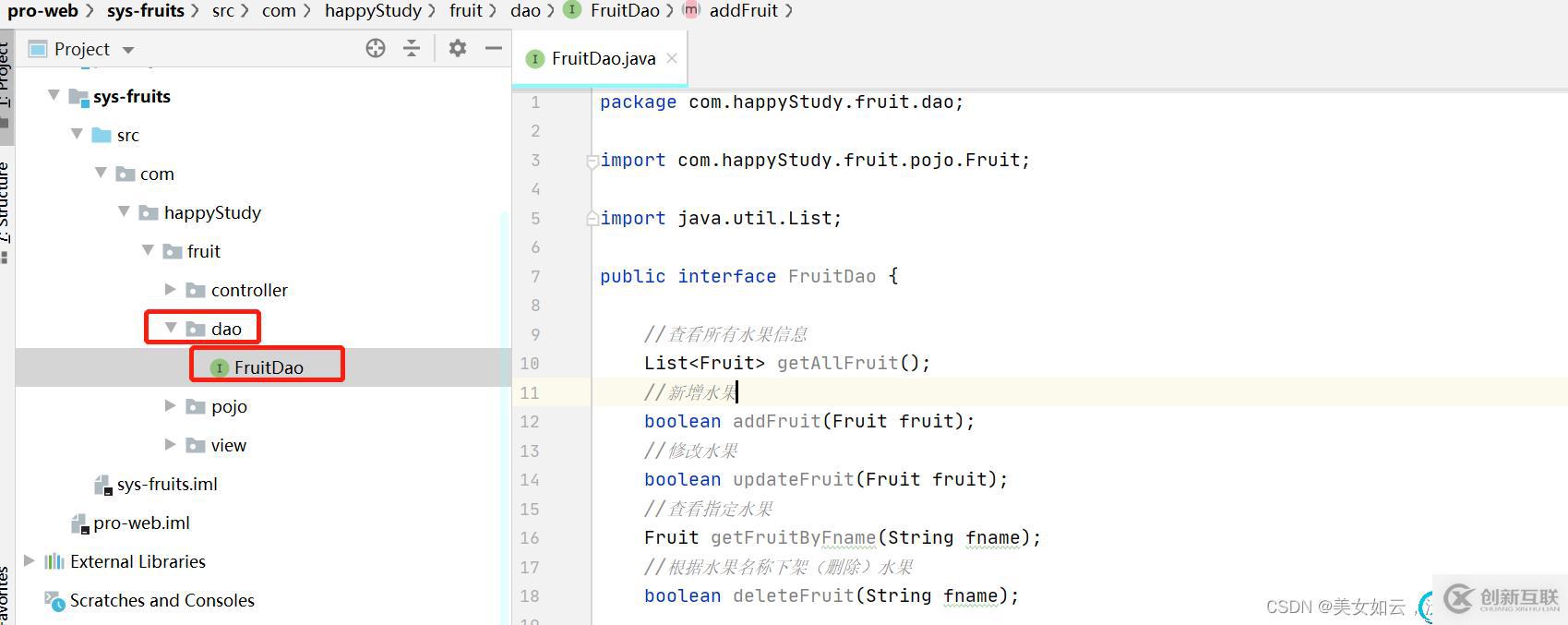 一、新建一個(gè)接口FruitDao.java