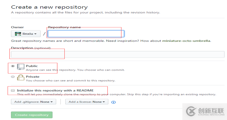 1.4填寫信息,如圖,提交。一個(gè)簡(jiǎn)單的版本庫(kù)就創(chuàng)建完畢了。
