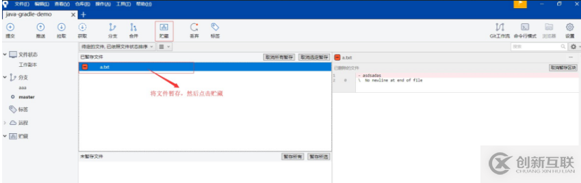 (11)暫存更改。可用來暫存當(dāng)前正在進(jìn)行的工作,比如想拉取最新代碼,又不想加新提交,或者另外一種情況,為了fix一個(gè)緊急的bug, 先貯藏,使返回到自己上一個(gè)提交, 改完bug之后再恢復(fù)貯藏區(qū), 繼續(xù)原來的工作。