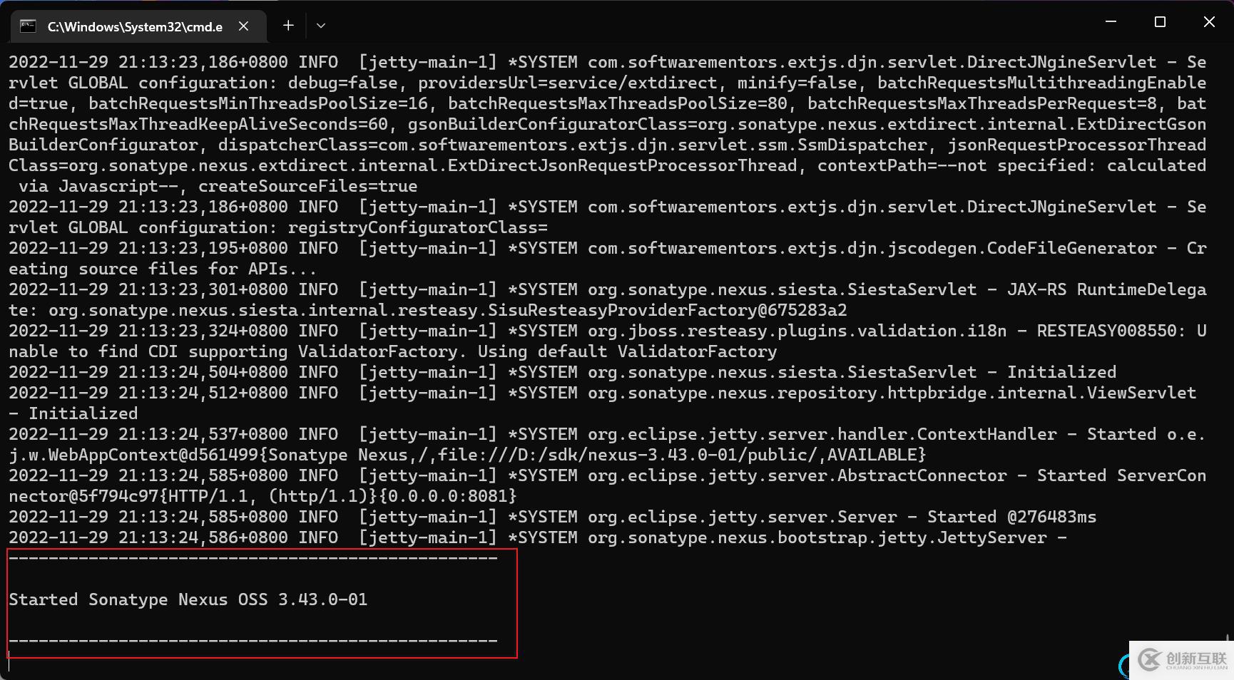 D:\sdk\nexus-3.43.0-01\bin啟動(dòng)服務(wù)器(命令行啟動(dòng))