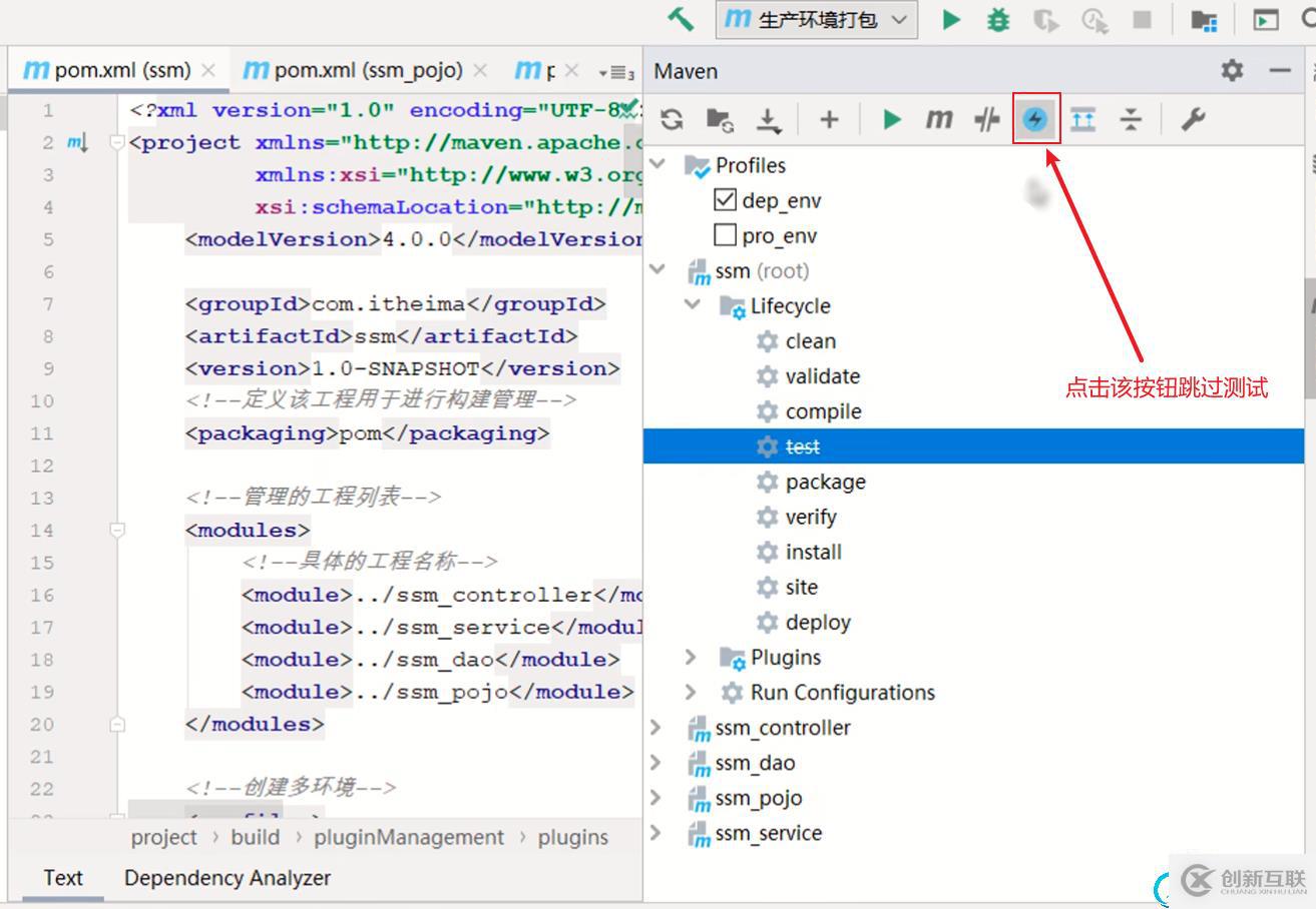../ssm_controller ../ssm_service ../ssm_dao ../ssm_pojo 注意事項(xiàng):參與聚合操作的模塊最終執(zhí)行順序與模塊間的依賴關(guān)系有關(guān),與配置順序無關(guān)
