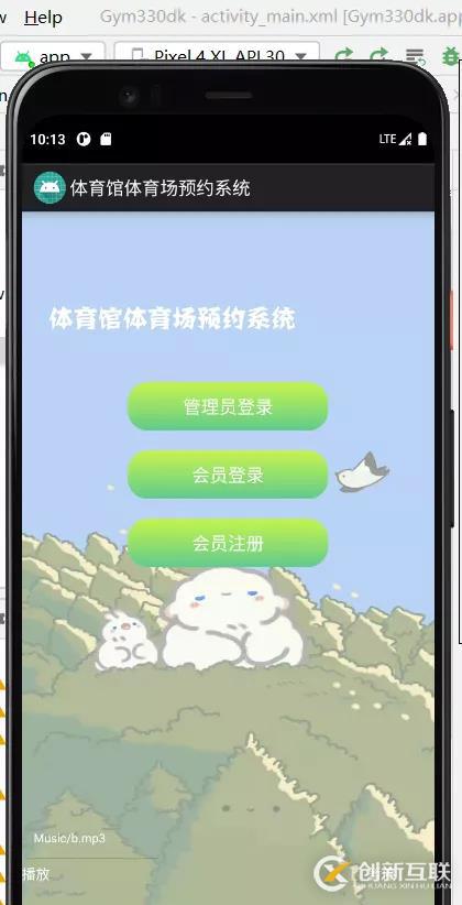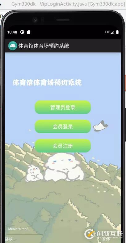 體育館預(yù)約系統(tǒng)App是體育館預(yù)約系統(tǒng)網(wǎng)站的客戶端程序,添加了音樂播放器,通過點(diǎn)擊“播放”、“暫停”來啟動(dòng)音樂播放器播放音樂;有“管理員登錄”、“會(huì)員登錄”、“會(huì)員注冊”等控件,點(diǎn)擊“管理員登錄”進(jìn)入到管理員登錄界面,里面可以選擇當(dāng)前所在的城市,提供注冊用戶功能,注冊完后用注冊的信息登錄,登錄后可以進(jìn)到系統(tǒng)的“我的”界面,通過點(diǎn)擊下面的“場地”、“發(fā)現(xiàn)”、“訂單”、“我的”等不同的RadioButton可以依次切換到場館列表、發(fā)現(xiàn)列表即場地的圖片等信息、訂單列表、用戶個(gè)人信息等不同的Fragment頁面。