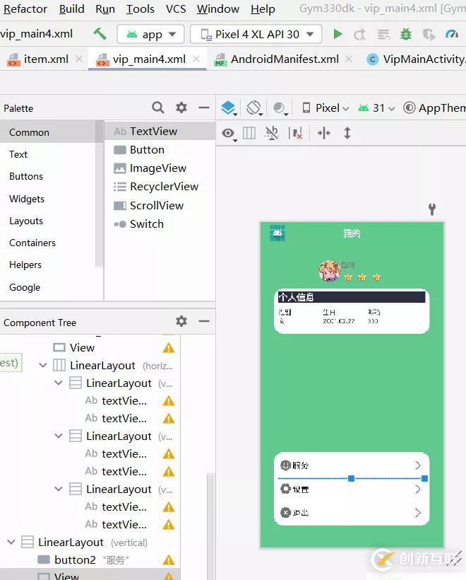 用到了View畫布,用來間隔按鈕,使頁面更加美觀整潔。