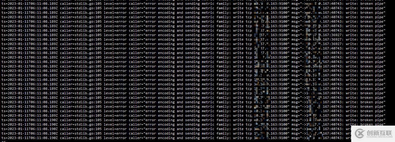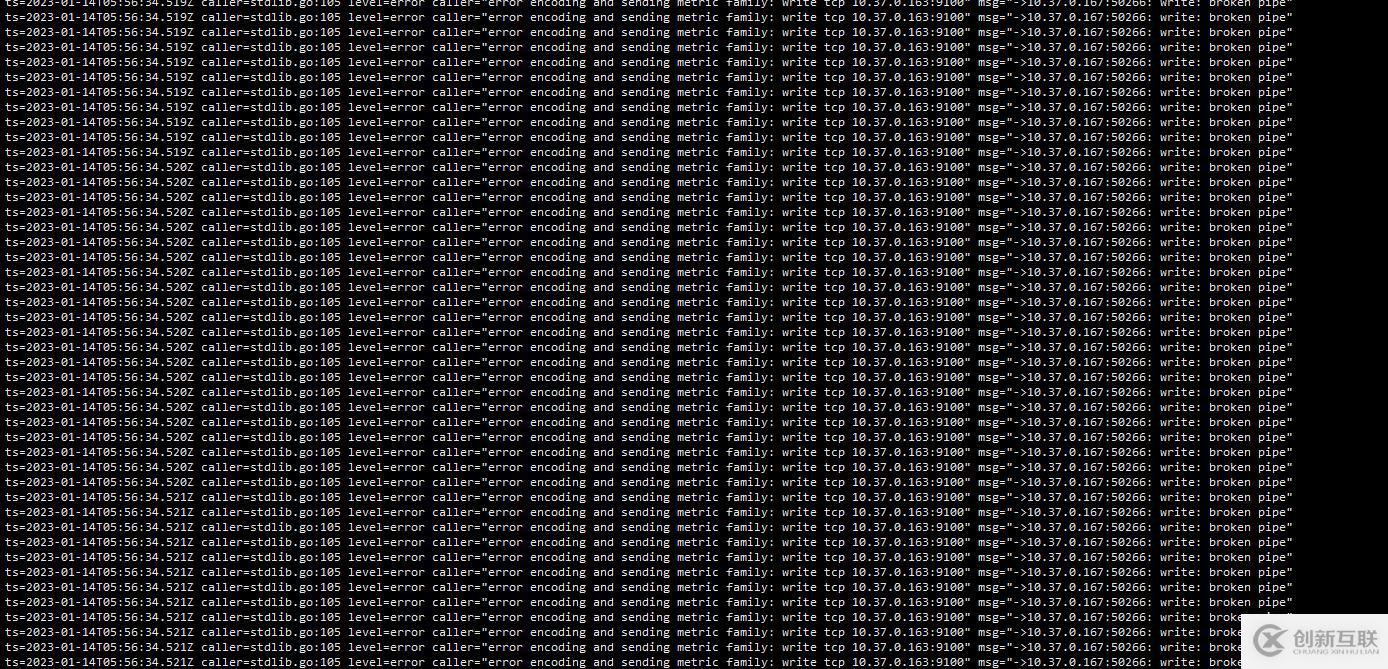 ts=2023-01-11T06:11:08.189Z caller=stdlib.go:105 level=error caller="error encoding and sending metric family: write tcp 163:9100" msg="->.167:40743: write: broken pipe"可以看到有大量的這種日志