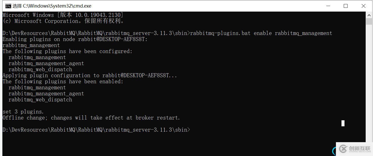 安裝rabbitMQ的管理插件,方便在瀏覽器端管理RabbitMQ ,進入到Rabbit的sbin目錄,使用cmd執(zhí)行命令:?rabbitmq-plugins.bat enable rabbitmq_management? 如下圖