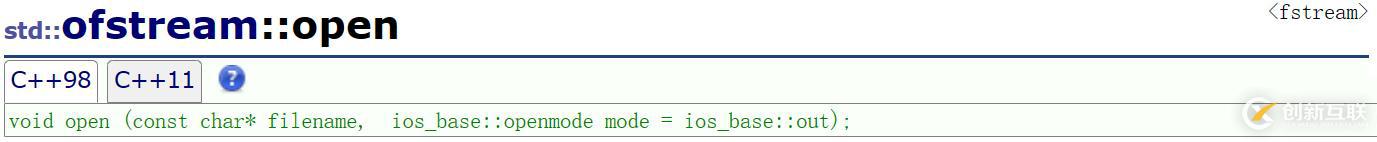 注:ifstream的功能是打開(kāi)文件寫(xiě)文件,因此上面的ifstream類(lèi)帶參構(gòu)造函數(shù)和open成員函數(shù)的第二個(gè)參數(shù)即文件打開(kāi)方式給了缺省值ios_base::out。