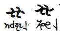 這樣的變體字大量存在,在彝文已經(jīng)相對(duì)規(guī)范的漢譯本中就有15%的變體字,原稿中就更多了,古彝文每個(gè)字的異體寫(xiě)法少則兩三個(gè),多則幾十種,除此以外,彝文還存在一些漢文所沒(méi)有的筆畫(huà),比如橫飄、橫回交,有些字在視覺(jué)上無(wú)甚差異,但實(shí)際上卻是意義讀音完全不同的兩個(gè)字: