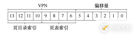 為了轉(zhuǎn)換該過程生成的虛擬地址,首先將其分成兩個組件:虛擬頁面號(virtual page number,VPN)和頁內(nèi)的偏移量(offset)。對于這個例子,因?yàn)檫M(jìn)程的虛擬地址空間是 64 字節(jié),我們的虛擬地址總共需要 6 位(2^6 = 64);頁的大小為16 字節(jié)(2^4 ),因此我們有一個 2 位(64字節(jié)/16字節(jié) = 2^2)的虛擬頁號(VPN);位于 64 字節(jié)的地址空間,因此我們需要能夠選擇 4 個頁。虛擬地址表示如下: