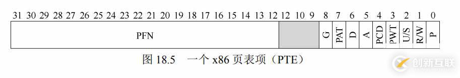 圖 18.5 顯示了來自 x86 架構(gòu)的示例頁表項(xiàng)[I09]。它包含一個存在位(P),確定是否允許寫入該頁面的讀/寫位(R/W),?確定用戶模式進(jìn)程是否可以訪問該頁面的用戶/超級用戶位 (U/S),有幾位(PWT、PCD、PAT 和 G)確定硬件緩存如何為這些頁面工作,一個訪問位 (A)和一個臟位(D),最后是頁幀號(PFN)本身。
