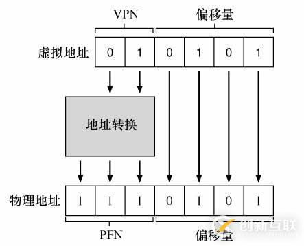 假設(shè)上面的加載是虛擬地址 21,其二進(jìn)制形式是 010101。虛擬地址“21”在虛擬頁“01”(或 1)的第 5 個(“0101”)字節(jié)處。我們的最終物理地址是 1110101(十進(jìn)制 117),正是我們希望加載指令(見圖 18.2)獲取數(shù)據(jù)的地方。