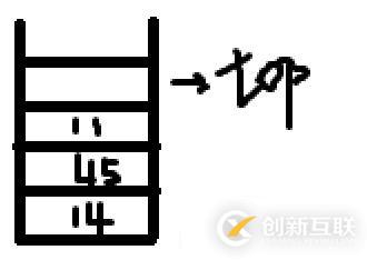 如圖1,這是一個(gè)容量為5的空棧,棧頂在最下邊。在圖2中,我們往棧頂插入了一個(gè)元素14,棧頂上移一個(gè)單位;