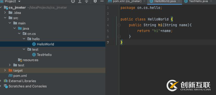 在HelloWorld類下,有個hi 的方法。 傳入 name,返回 hi+name。