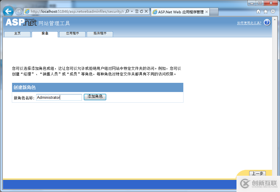 在角色名稱的輸入框中輸入 “Administrator”,點(diǎn)擊增加角色按鈕。