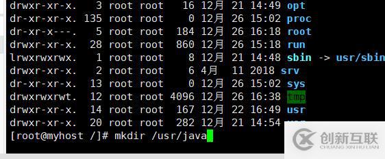 4、在usr目錄下新建Java目錄,然后將下載的JDK拷貝到這個新建的Java目錄中創(chuàng)建目錄命令:mkdir /usr/java