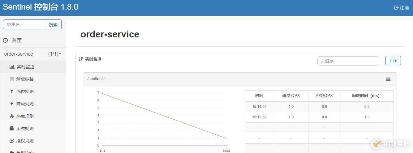 注意: 默認是沒顯示order-service的,需要訪問幾次接口,然后再刷新sentinel管控臺才可以看到.