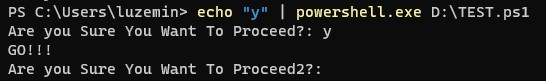 上面的問題轉(zhuǎn)化為搜索引擎可識別的問題就是“如何讓PowerShell在需要確認(rèn)的時(shí)候自動(dòng)輸入?”