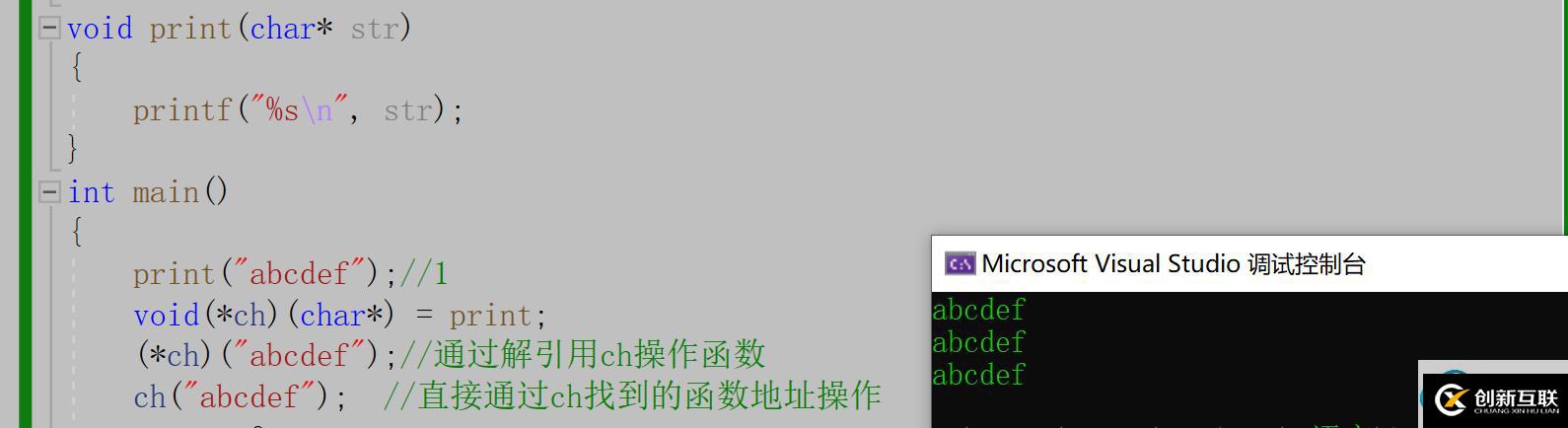 int add(int x, int y) { return x + y; } int main() { int a = 0; int b = 0; int(*pa)(int, int) = &add;//存放add函數(shù)地址的函數(shù)指針 printf("%d\n", (*pa)(10, 20));//直接通過解引用pa操作函數(shù)add return 0; }