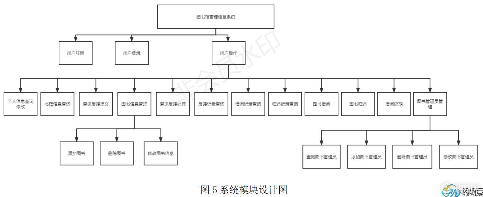 通過(guò)對(duì)圖書館管理信息系統(tǒng)的分析,定義出系統(tǒng)模塊設(shè)計(jì)圖如圖5: