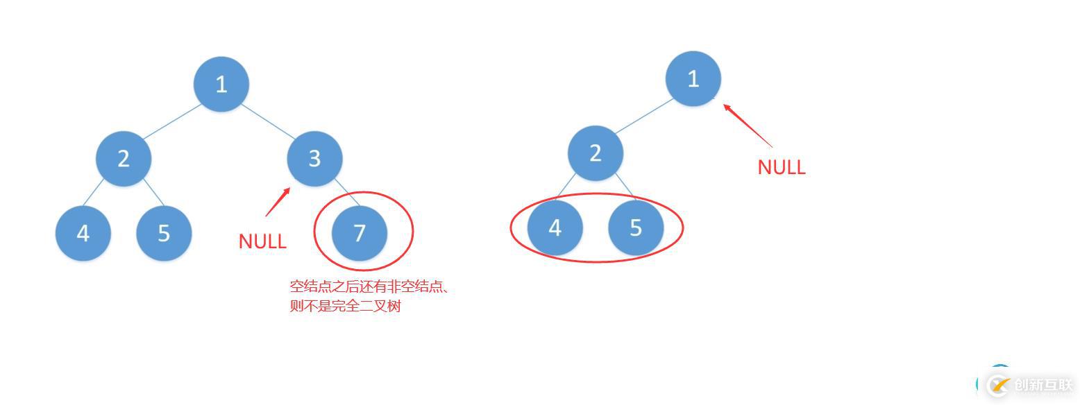 }判斷是否為完全二叉樹🦄這個問題是在層序遍歷的基礎之上實現(xiàn)的,我們知道判斷是否為完全二叉樹的關鍵在于最后一層前都為滿,最后一層的結(jié)點必須連續(xù)。因此我們可以這樣想,只要層序遍歷直到遇到空指針就停止,之后判斷隊列里面還有沒有非空結(jié)點。若隊列里都是空指針則說明這棵樹為完全二叉樹。