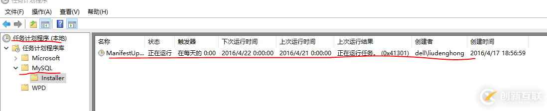 這一條安裝命令,Installing MySQL 5.6.21 using MySQLInstallerConsole.exe win10狀態(tài)下,從開(kāi)始-->所有應(yīng)用--->管理工具--->任務(wù)計(jì)劃程序-->左側(cè)任務(wù)計(jì)劃程序庫(kù)文件夾(或直接用快捷方式win+Q 輸入 任務(wù)計(jì)劃程序 點(diǎn)擊上面的程序進(jìn)入),展開(kāi)文件夾-->mYsql子文件夾installer,點(diǎn)擊。在右側(cè)窗口右鍵點(diǎn)擊鼠標(biāo),選擇“禁用”即可,如下圖: