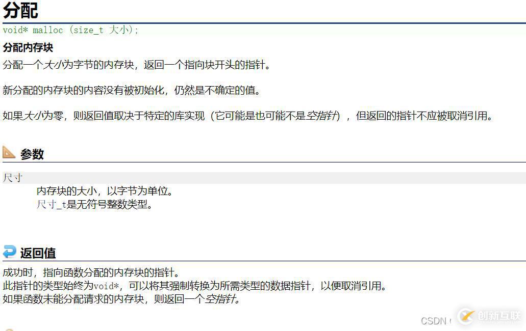 如果開辟成功,則返回一個指向開辟好空間的指針。