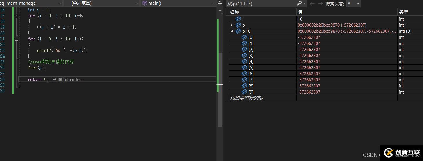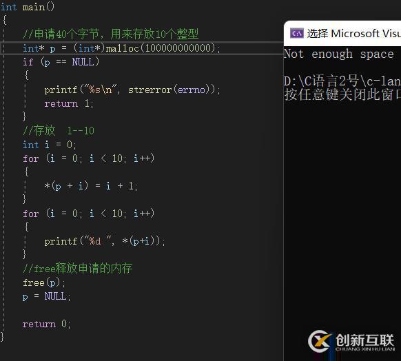 同時,上面用malloc申請了一塊空間,但是函數(shù)內(nèi)沒有釋放,函數(shù)銷毀后,p也銷毀,這塊空間就會內(nèi)存泄漏。記得malloc要與free搭配使用。