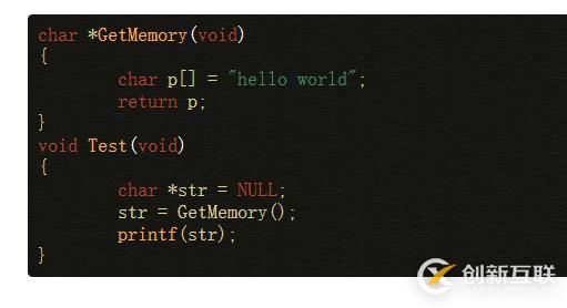 }這里GetMemory函數(shù)是值傳遞,且沒有返回值,對str無影響。因此str還是指向NULL,即0地址處,然后調(diào)用strcpy需訪問0地址處內(nèi)容,導(dǎo)致非法訪問。