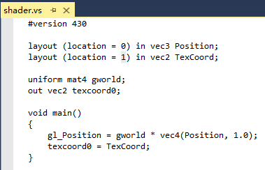 主渲染循環(huán)中的代碼有所添改,在之前啟用的用于頂點(diǎn)位置的頂點(diǎn)屬性0之后,這里我們啟動(dòng)一個(gè)頂點(diǎn)屬性1用于紋理坐標(biāo)。這個(gè)和頂點(diǎn)著色器中的layout變量聲明是一一對(duì)應(yīng)的。