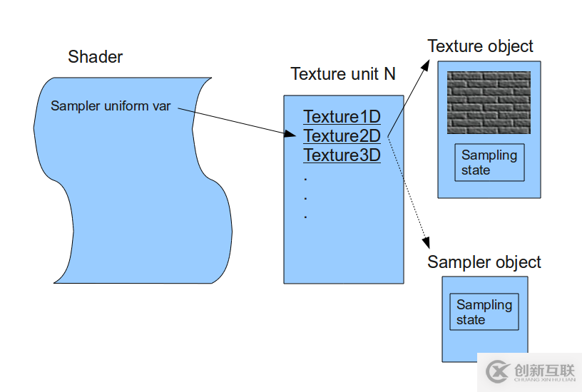 先將要使用的紋理單元的索引放到shader中的取樣器一致變量里。