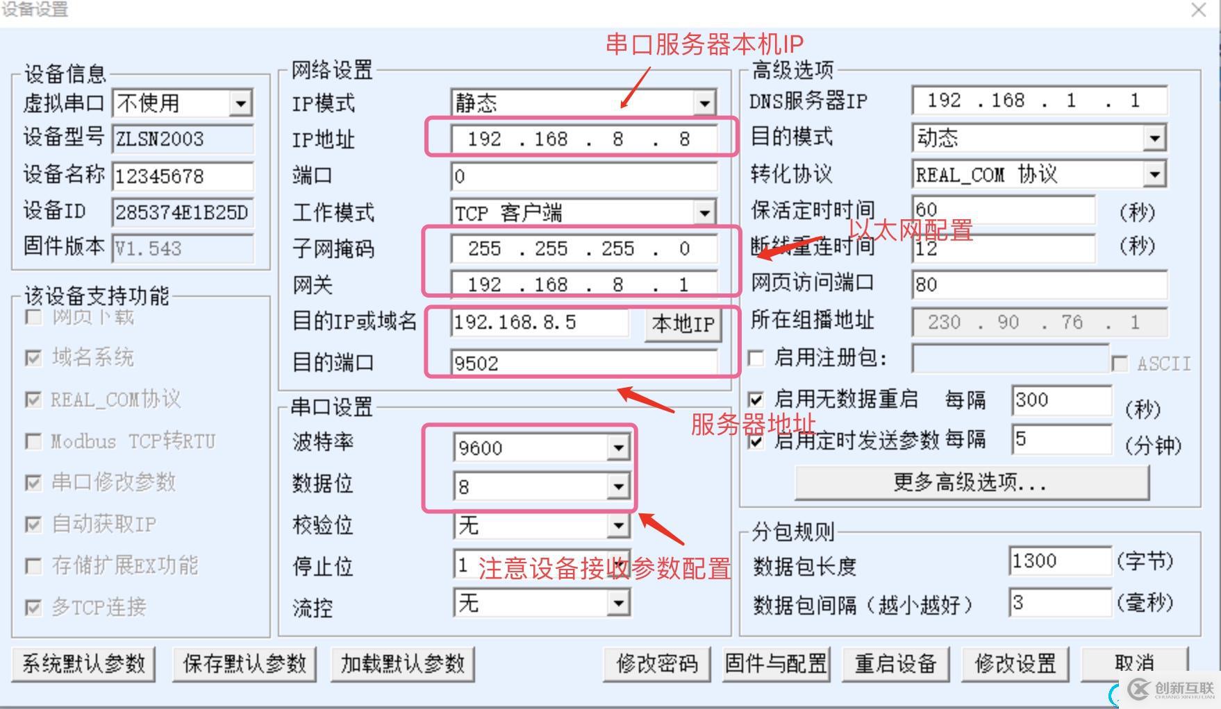 通訊是TCP/IP協(xié)議,一定要配置好服務(wù)器地址與網(wǎng)關(guān)