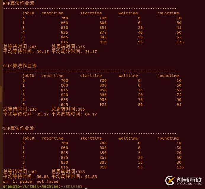 我們實(shí)驗(yàn)結(jié)果中可以發(fā)現(xiàn)對(duì)測(cè)試數(shù)據(jù)而言,并非HRRF算法的平均等待時(shí)間和平均周轉(zhuǎn)時(shí)間最短。對(duì)于這組作業(yè),SJF算法的平均等待時(shí)間和平均周轉(zhuǎn)時(shí)間比 HRRF算法和HPF算法的短,說(shuō)明最適合這個(gè)作業(yè)的調(diào)度算法是SJF。
