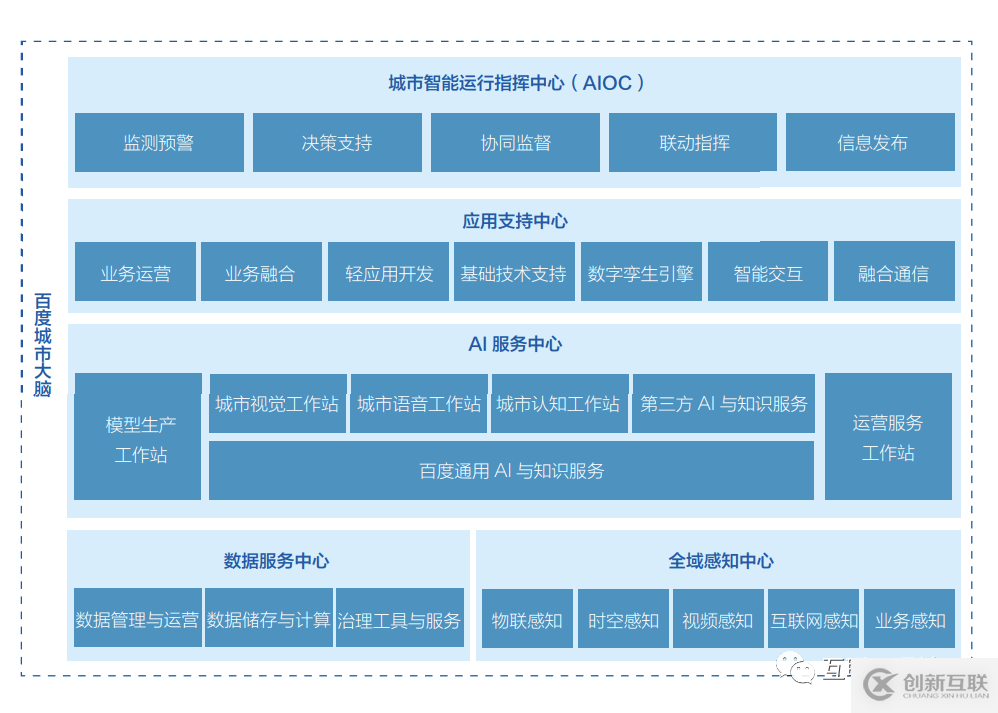 百度依托自主可控的 AI 支撐技術(shù)、海量多模態(tài)數(shù)據(jù)匯集與處理能力、開(kāi)放平臺(tái)生態(tài)體系等方面 核心優(yōu)勢(shì),構(gòu)建包含全域感知中心、數(shù)據(jù)服務(wù)中心、AI 服務(wù)中心、應(yīng)用支撐中心及城市智能運(yùn) 行指揮中心(AIOC)等五項(xiàng)內(nèi)容的城市大腦,實(shí)現(xiàn)城市全時(shí)空要素立體感知、全流程數(shù)據(jù)安全 共享、全方位 AI 能力共用、全業(yè)務(wù)系統(tǒng)應(yīng)用支撐、全場(chǎng)景智能協(xié)同指揮。