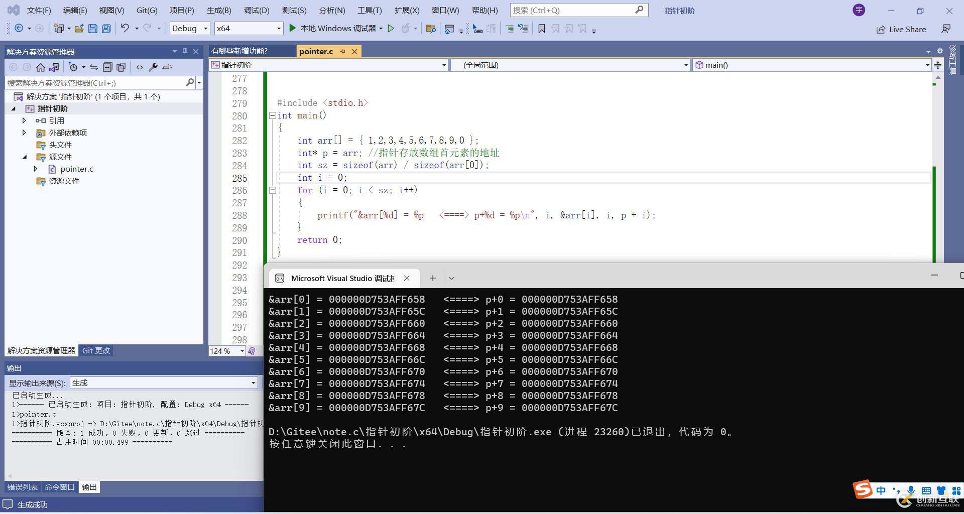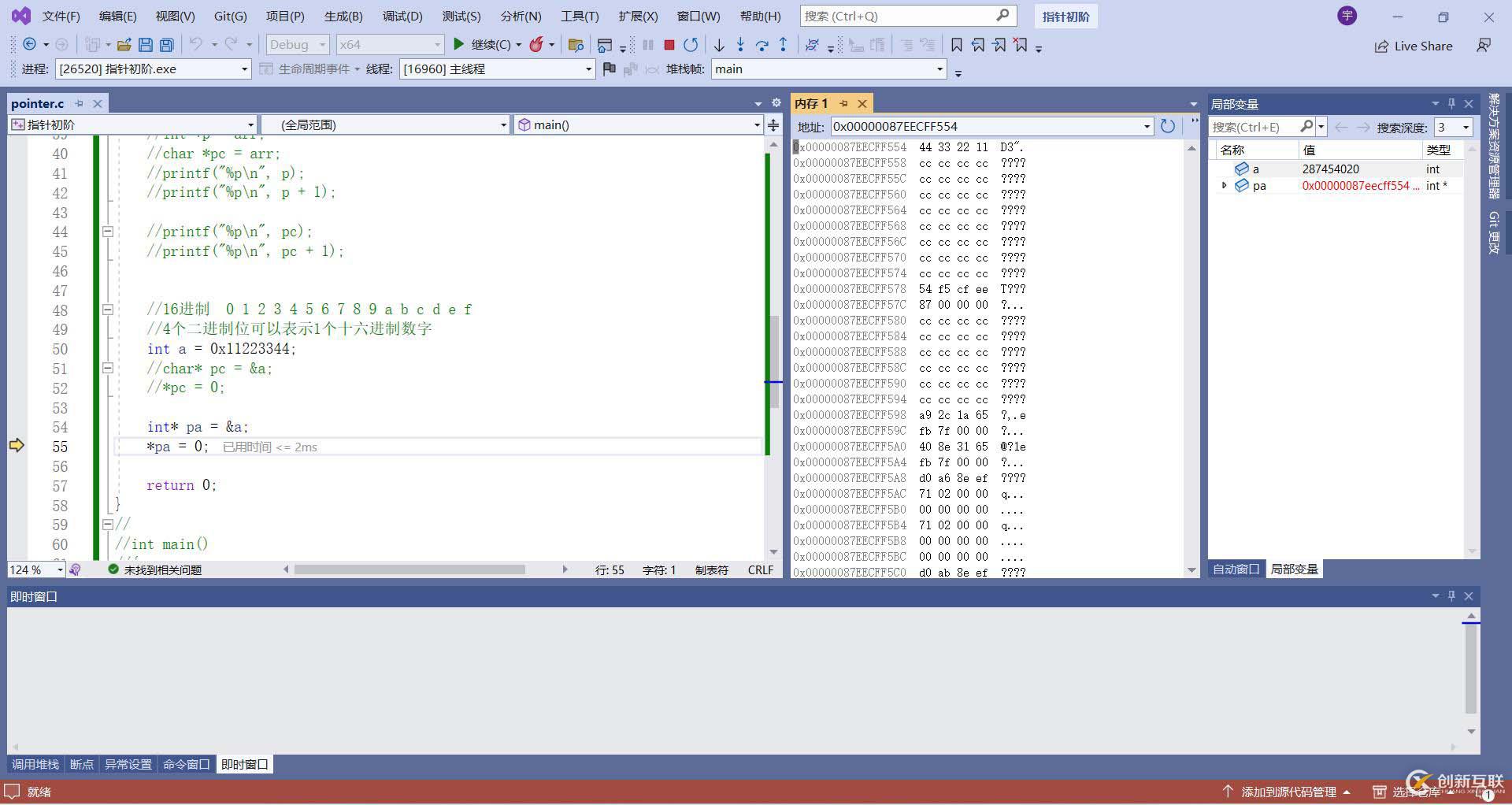 *pi = 0; //重點在調(diào)試的過程中觀察內(nèi)存的變化。