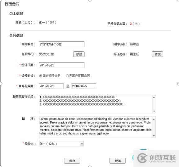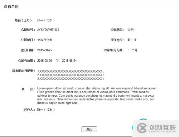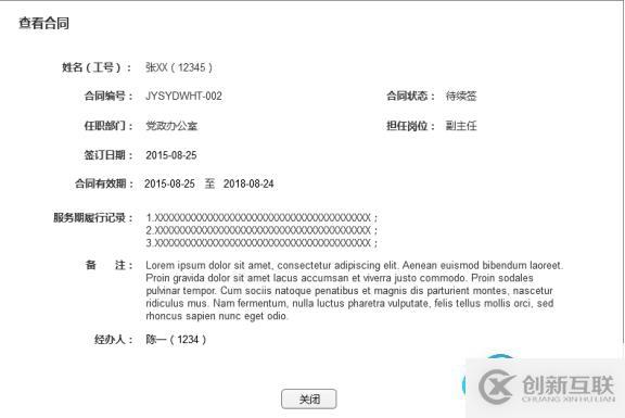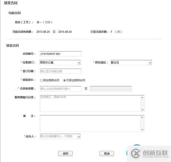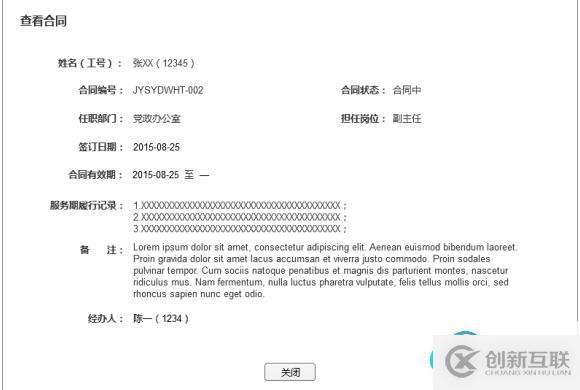履行中合同:查看非新簽合同(固定期限合同)窗口
