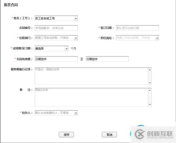 2.【新簽合同】:(注意,必填項(xiàng)使用紅色星號“*”標(biāo)注)