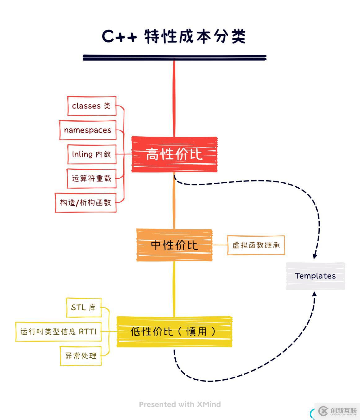 將C++的特性對號入座,我們便有了下邊這張圖。其中,Templates 模板比較特殊,性價比的高低取決于具體的應(yīng)用。在我們的嵌入式項目中,就是用Templates實現(xiàn)的底層代碼,后期可以單獨寫一個例子。