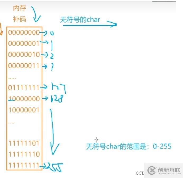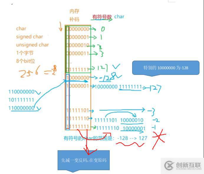 由此,對char類型的內(nèi)存補(bǔ)碼(有符號):