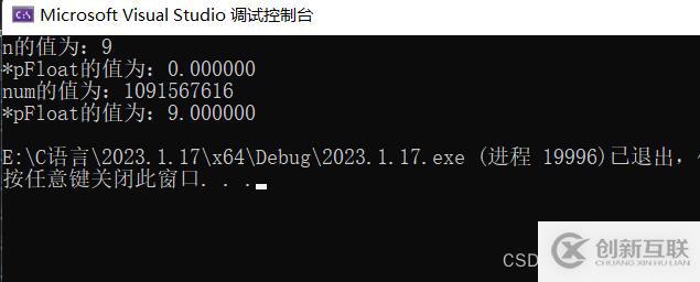 printf("*pFloat的值為:%f\n", *pFloat);//9.0