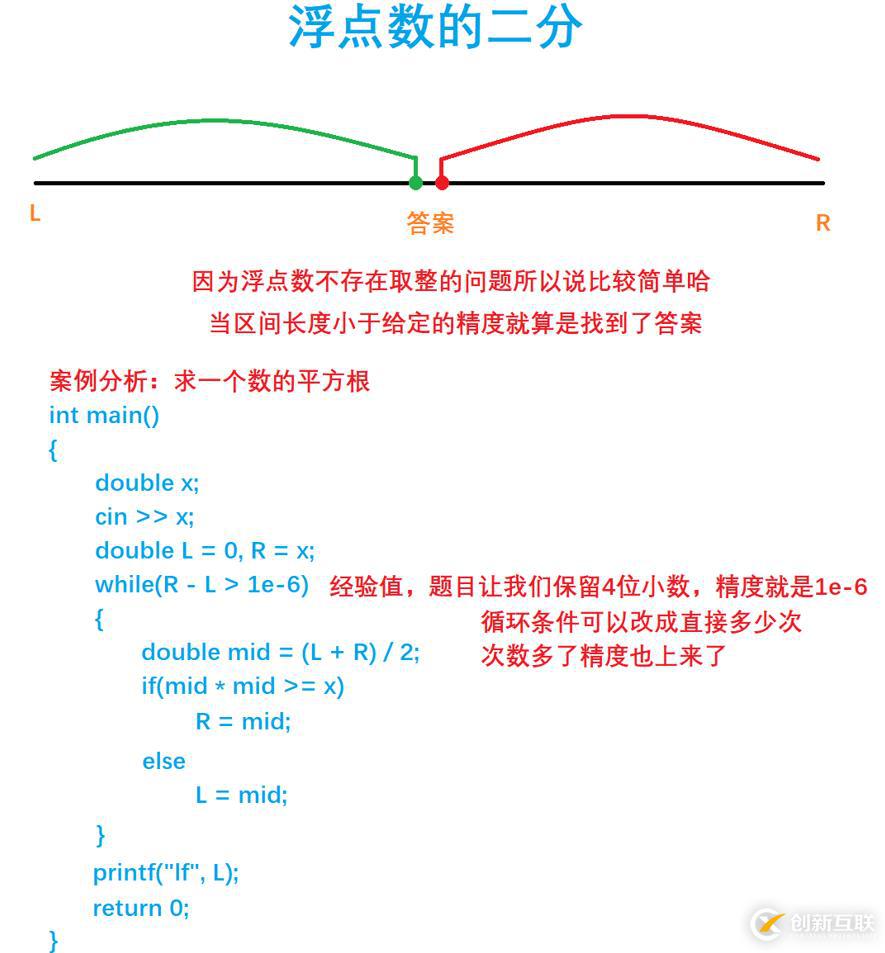 核心:保證答案在更新后的區(qū)間,當(dāng)區(qū)間長(zhǎng)度為1時(shí)我們就找到了答案。