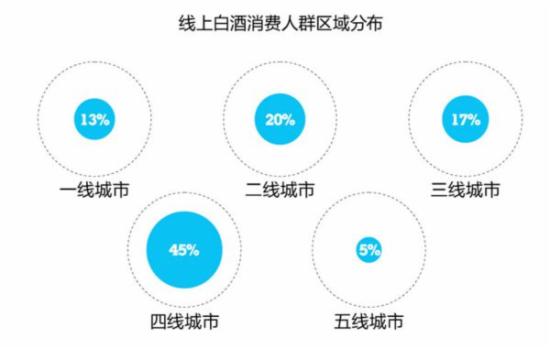 傳統(tǒng)線下白酒主要是價(jià)格較高的高端白酒,銷(xiāo)量也集中于一二線城市。然而新興的線上白酒市場(chǎng)卻表現(xiàn)出了不一樣的特征: