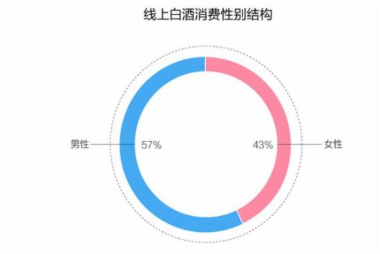 目前,男性仍然是線上消費(fèi)白酒的主要群體,不過(guò)女性消費(fèi)者的比例也達(dá)到了43%。