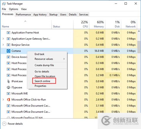 在Windows 8的時(shí)代,任務(wù)管理器中就已經(jīng)很人性化地加入了"在線(xiàn)搜索"功能。在繁雜的各種進(jìn)程中見(jiàn)到陌生的面孔,也不用過(guò)于擔(dān)心,右鍵一點(diǎn),選擇"在線(xiàn)搜索",就會(huì)自動(dòng)打開(kāi)網(wǎng)頁(yè)給出結(jié)果: