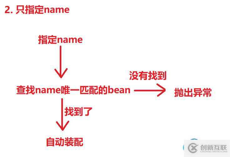 如果只指定了name的情況,他就會(huì)在Spring中查找name唯一匹配的bean,如果找到了則自動(dòng)裝配,沒(méi)有找到則拋出異常,