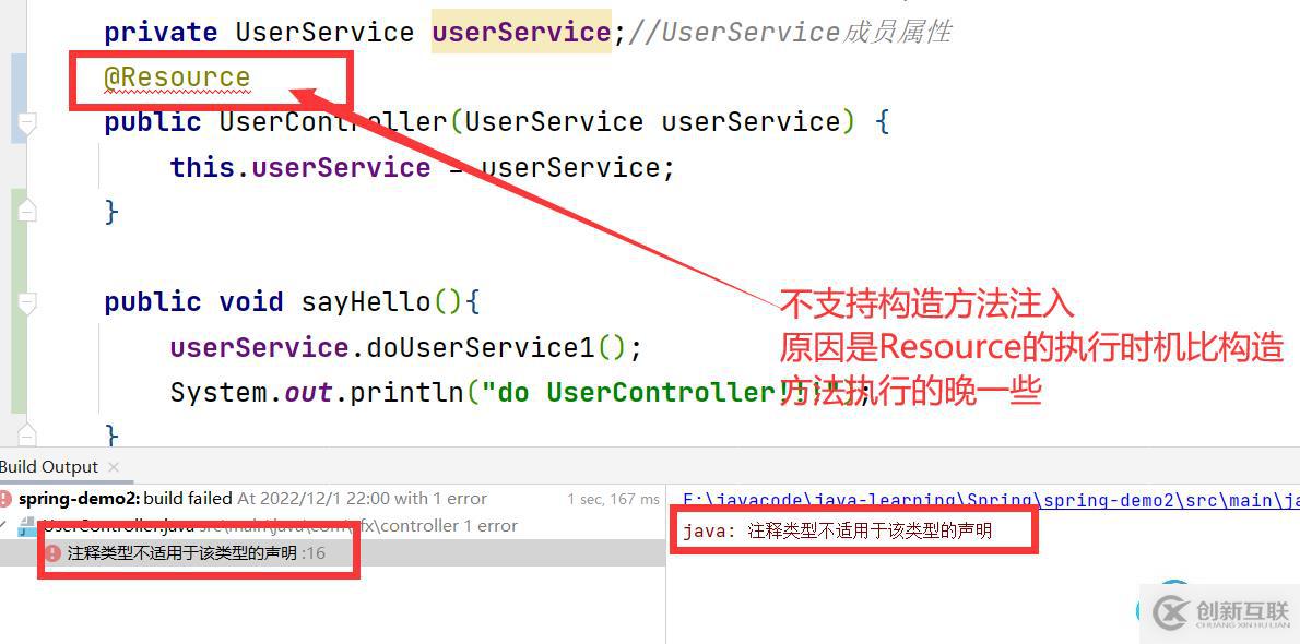 @Resource注解不能實(shí)現(xiàn)構(gòu)造方法注入,原因是Resource的執(zhí)行時(shí)機(jī)比構(gòu)造方法執(zhí)行時(shí)機(jī)晚一些.