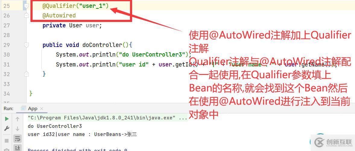 我們就可以使用注解@Qualifier注解中填入我們想要裝配Bean的名稱,所以,通過(guò)將 @Qualifier 注解與我們想要指定特定的Bean名稱一起裝配,這樣Spring就會(huì)從多個(gè)相同類型并滿足裝配的要求找出我們想要的Bean