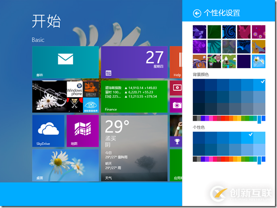 在開始界面的背景壁紙還是不能隨意添加,不過已經(jīng)可以看到更多的選擇,而且可以設(shè)置為與桌面壁紙相一致。