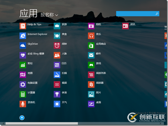 Windows 8.1將應(yīng)用分類整合在應(yīng)用欄中,節(jié)省了很多空間,,同樣可以根據(jù)需求進(jìn)行瀏覽。
