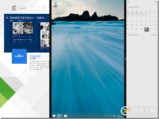 在分屏瀏覽方面,Windows 8.1的改變也算是一大驚喜。默認(rèn)的SnapView將是平分整個(gè)屏幕而非偏向一方。當(dāng)屏幕分辨率足夠大時(shí),還可以對分屏的位置進(jìn)行調(diào)整或是加入更多的應(yīng)用。(據(jù)說最多可以四個(gè)應(yīng)用共屏?)